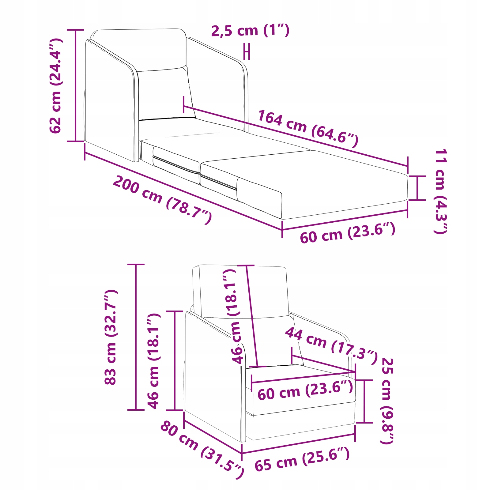 Цей диван-ліжко чудово поєднує функціональність і сучасний стиль. Це дає велику гнучкість у вашому просторі. Елегантна чорна тканина та мінімалістичний дизайн роблять його чудовим місцем для читання чи відпочинку. Легко перетворюється на зручне ліжко, коли приходять гості. Багатофункціональне використання: ідеально підходить для сидіння та сну, цей диван-ліжко легко перетворюється із зручного місця для відпочинку на практичне ліжко для гостей, забезпечуючи багато комфорту. Їх легко переносити на будь-який випадок. Регульовані елементи: завдяки регульованим підлокітникам ви можете знайти ідеальне положення для сидіння або лежання. Ця функція робить диван ще більш універсальним. Матеріал, стійкий до забруднень: цей диван-ліжко, виготовлений із високоякісної поліефірної тканини, є стильним і практичним. Стійкість до плям означає, що вона залишається свіжою щодня, що полегшує догляд у жвавому домі. Компактні розміри: ідеально підходить для невеликих кімнат, цей диван-ліжко має розміри 65x80x83 см, добре вписуючись у квартири та затишні приміщення. Він пропонує практичність без шкоди стилю. Надзвичайний комфорт: сидіння з м’якого пінопласту створені для максимального задоволення та ідеально підходять для тривалого відпочинку.