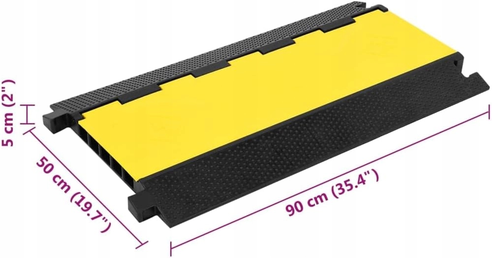 Цей 5-канальний кабельний пандус ідеально підходить для приховування та захисту проводів, кабелів або труб у місцях з інтенсивним рухом. Він має інтенсивний жовтий колір і попереджувальні символи на верхній частині, що збільшує його видимість. Він містить 5 каналів для прокладки та кріплення кабелів і може витримувати максимальне навантаження в 10 тонн. Кабелі можна легко вставити або зняти Модульна конструкція дає змогу з’єднати кілька пандусів, щоб закріпити довші кабелі