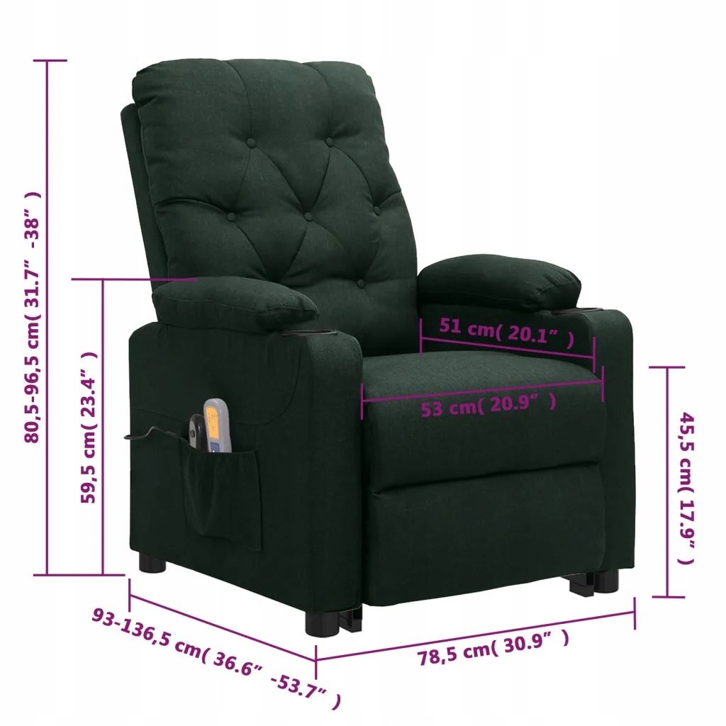 Vidaxl піднятий масажний стілець, темно -зелений, тканина