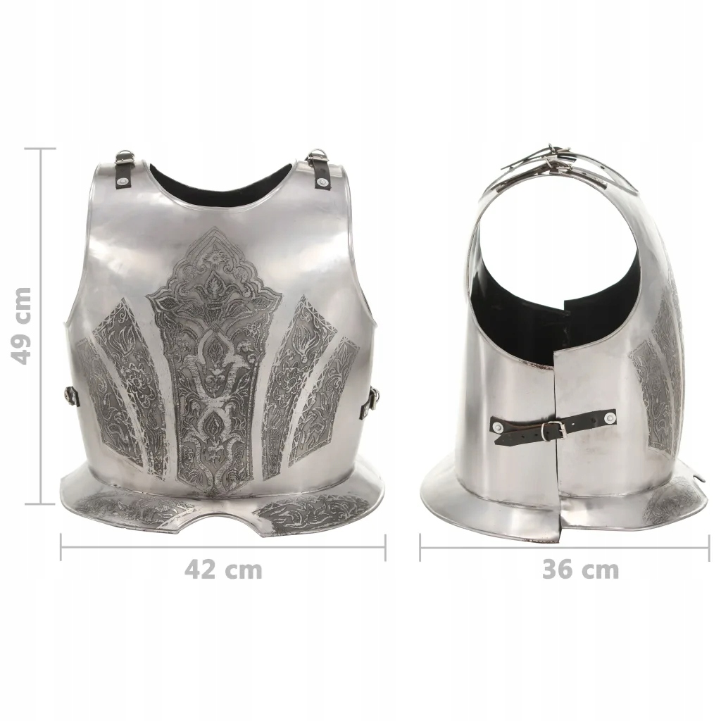 Цей один вигляд Cirate ідеально підходить для LARP (речовина в прямому ефірі), косплей, історичні чи Хеллоуїн, як театральна опора та для історичної реконструкції. Це також буде привабливим експонатом. Ця броня - це точна репліка оригінальної ланцюга середньовічного лицаря, яка забезпечує захист як спереду, так і ззаду. Він повністю підходить для носіння і оснащений регульованими ремінцями для шкіри, щоб він міг бути зручним. Цей нагрудний знак поєднує в собі історичний стиль та тверді матеріали, створюючи ефективні броні. Він був виготовлений з відшліфованої сталі з товщиною 1,024 мм.