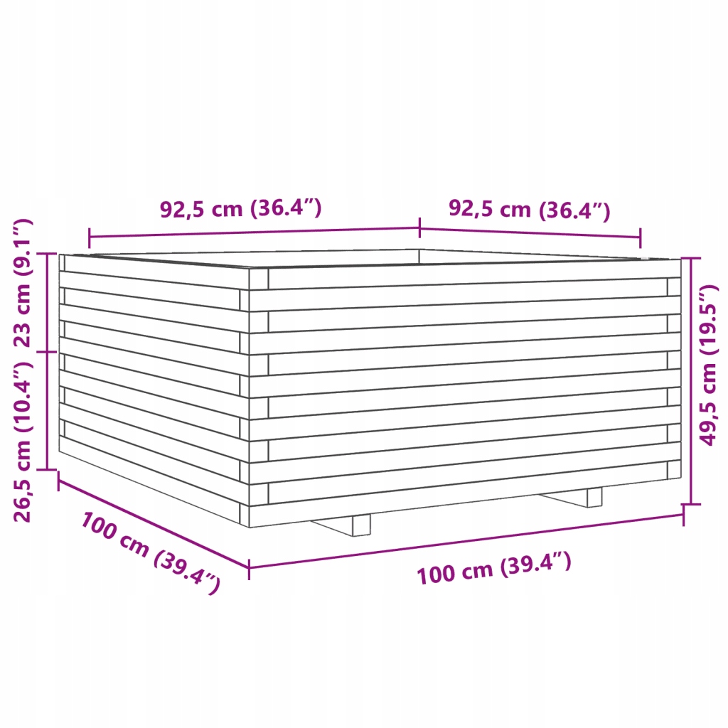 Vidaxl садовий горщик, 100x100x49,5 см, суцільна сосна деревина