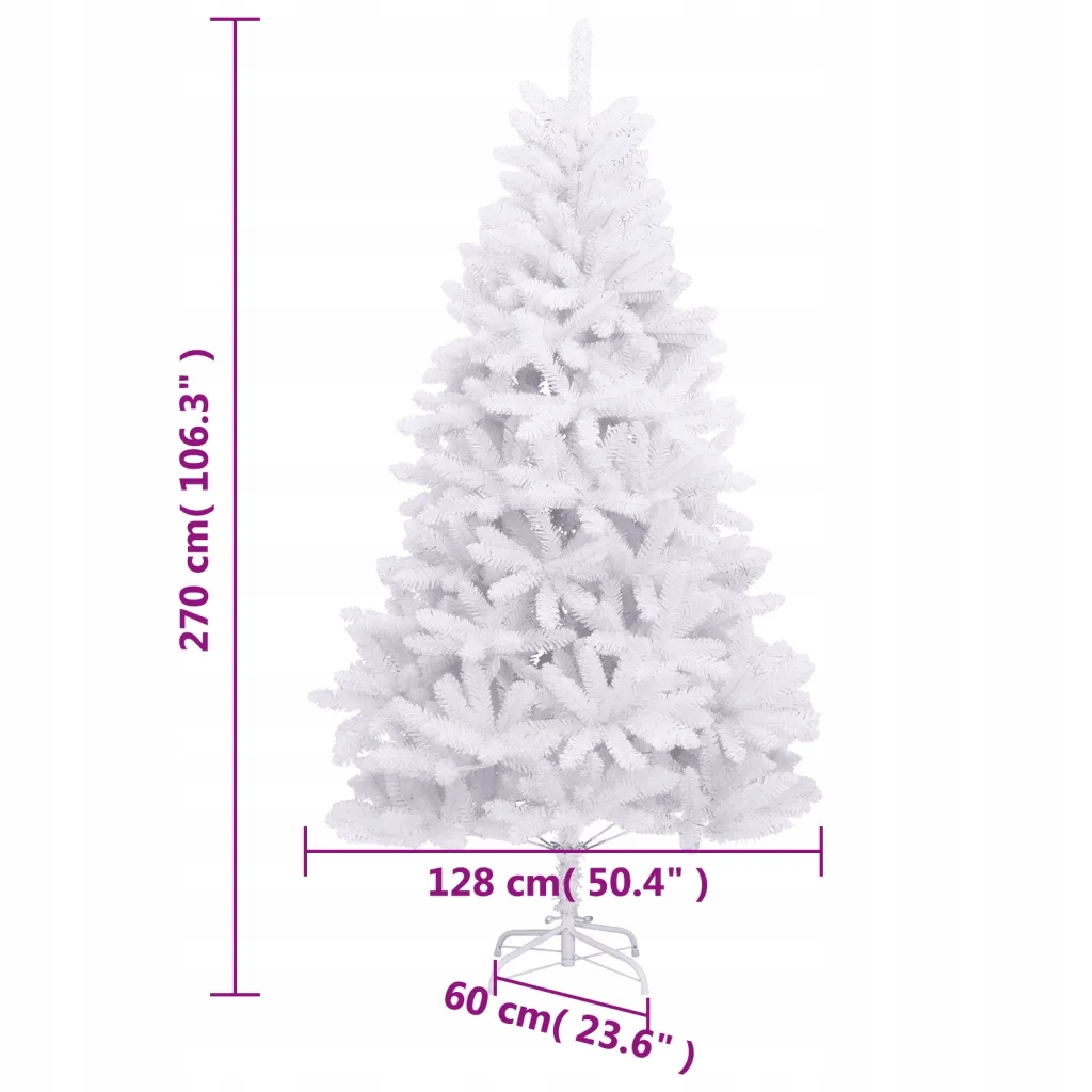 vidaXL Штучна ялинка з петлями та підставкою, біла, 270 см