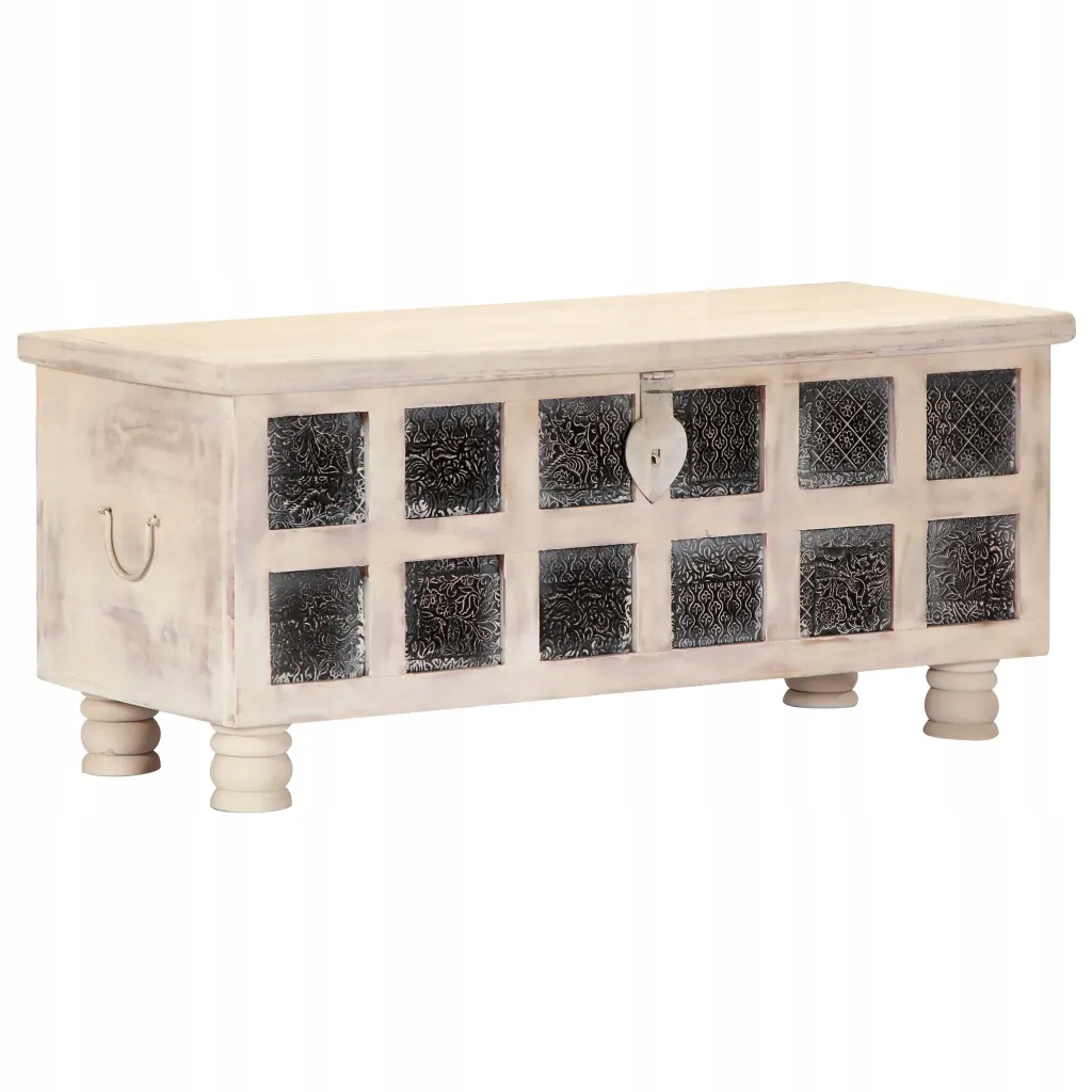 Унікальна дерев'яна скриня поєднує в собі стильний зовнішній вигляд і функціональність, що робить її справжньою окрасою Вашого дому. Скриня виготовлена з масиву акації - твердої тропічної деревини з красивою зернистістю, що робить меблі виключно міцною і довговічною. Він пропонує багато місця для організації різних предметів. Завдяки стійкій плоскій кришці скриню також можна використовувати як журнальний столик, на якому можна поставити напої, вази та інші декоративні предмети. Майстерність і красива текстура деревини роблять кожен виріб унікальним і трохи відрізняється від наступного.