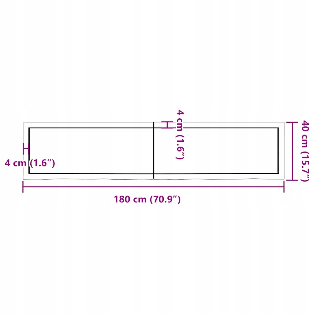 vidaXL Стільниця, темно-коричнева, 180x40x(2-6) см, масив дуба