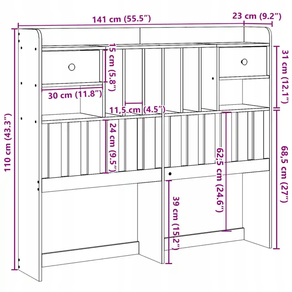 Це стильне узголів’я доповнить каркас вашого ліжка та підійде до будь-якої спальні. Стійка та міцна рама: масив сосни відомий своєю міцністю та довговічністю. Його проста зернистість і характерні сучки надають йому сільського шарму. Багато місця для зберігання: це елегантне узголів’я містить 6 зручних відділень і 2 висувних ящика, що пропонує багато місця для зберігання необхідних речей під рукою. Економія місця: узголів’я економить простір, оскільки воно може замінити бічні шафи, таким чином дозволяючи вам максимально використовувати простір у спальні, що ідеально підходить для невеликих інтер’єрів. Окремо стояче узголів’я: окремо стояча модель пропонує безпроблемне рішення, її можна розміщувати та переміщати без необхідності кріплення до стіни.