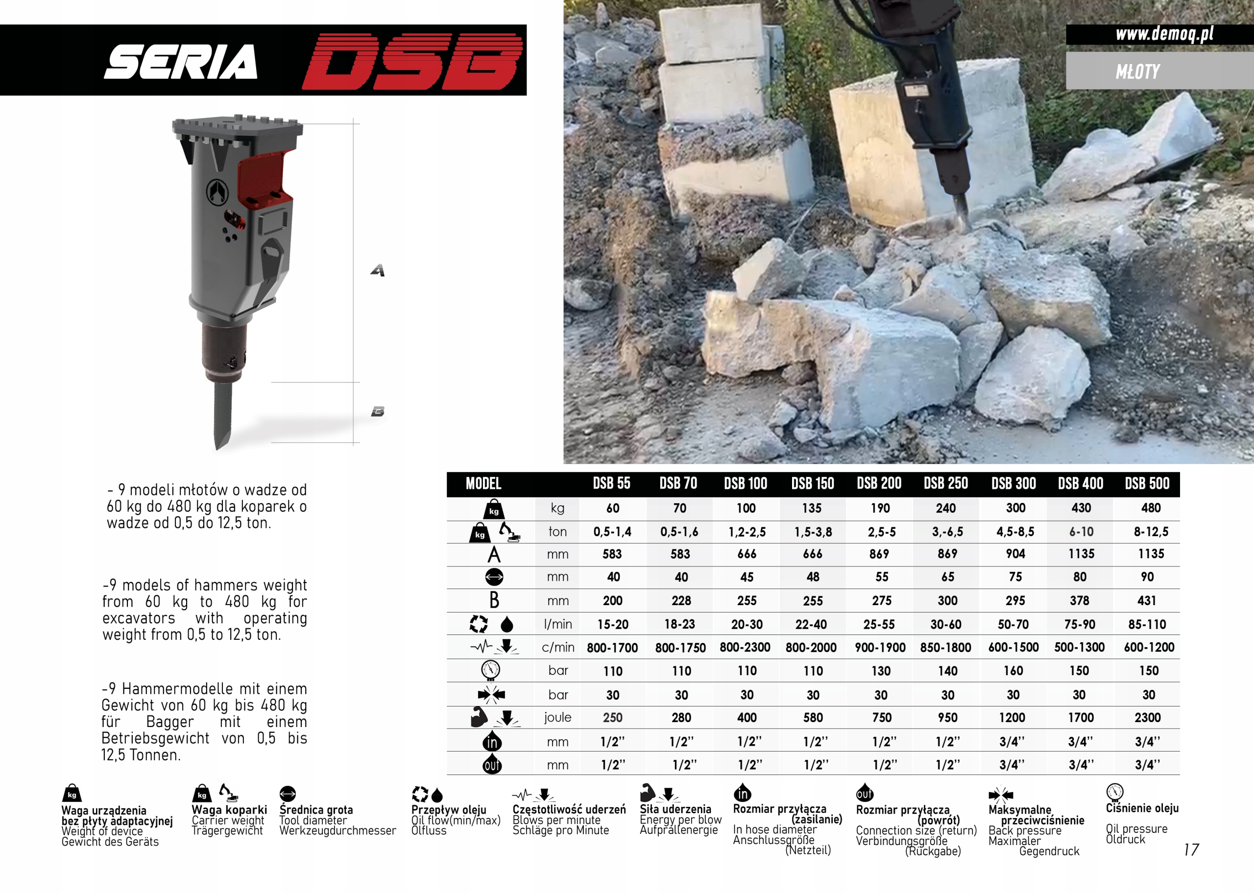 У нас є поради для всіх гідравлічних молотів DEMOQ серій DSB, DM і DFX: