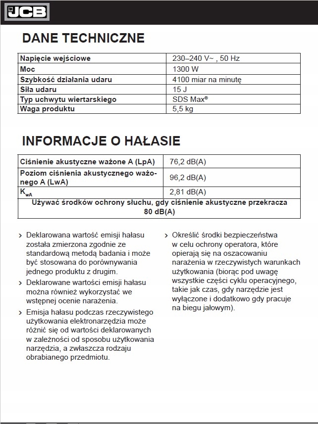 Відбійний молоток 1300 Вт 230 В JCB.
