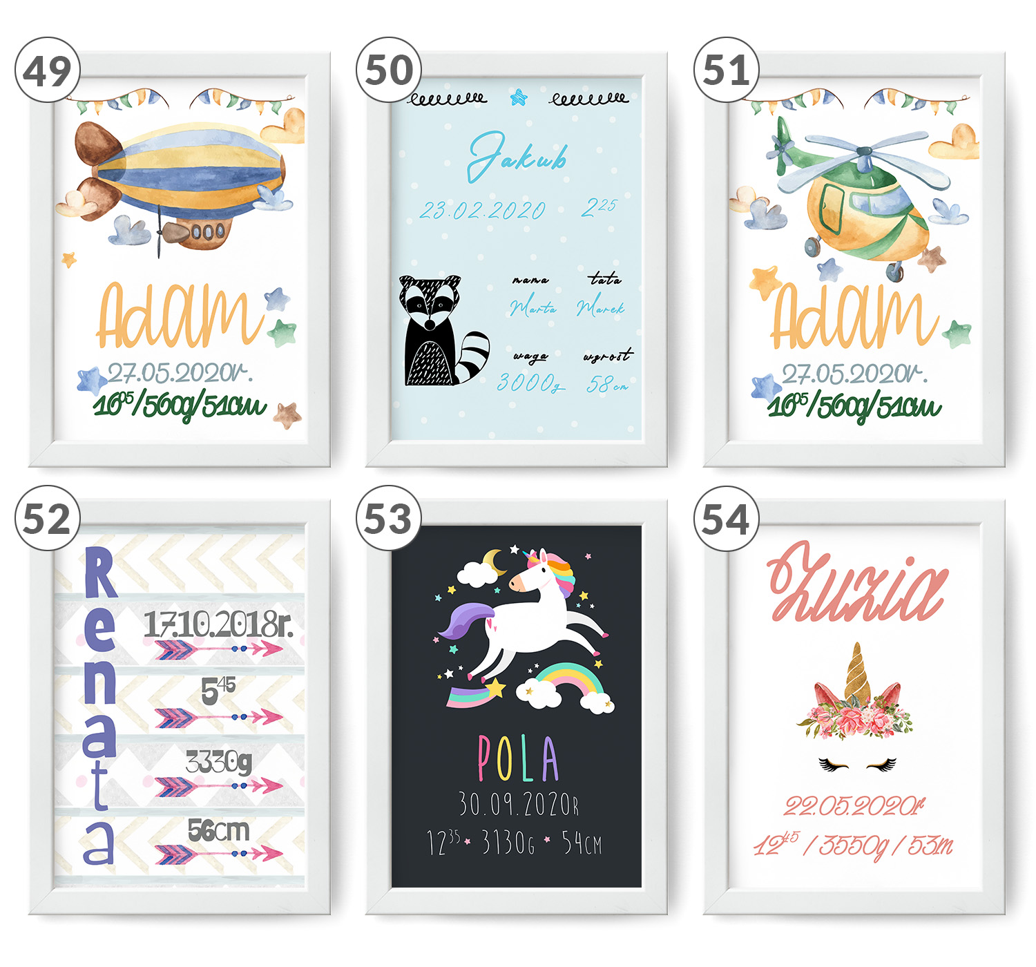 - всі інформація, яка вказана в свідоцтві (ім’я дитини, вага, зріст, дата народження, час народження, іноді: місце народження, імена батьків)