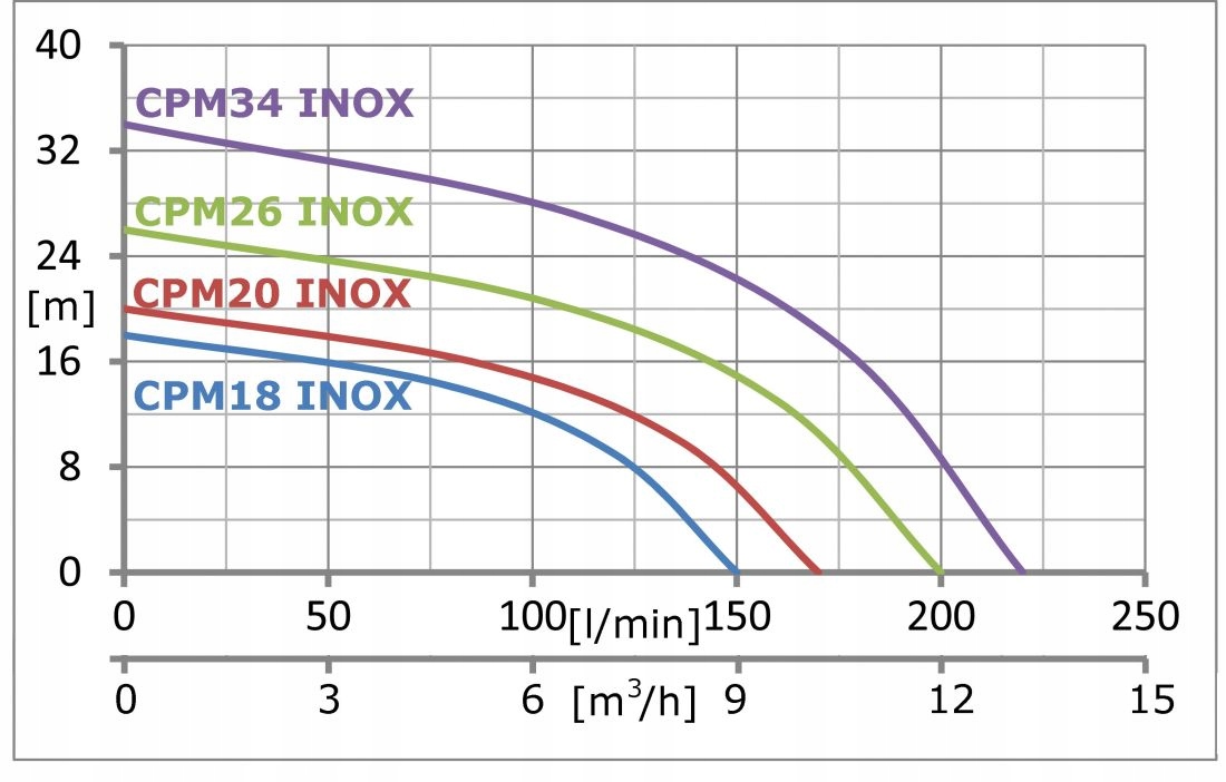CPM-26 INOX IBO — одноступінчастий відцентровий насос. Призначення насоса - перекачування неагресивних рідин. Інноваційна конструкція пристрою дозволяє перекачувати рідини з домішками з витратою 0,27 кг/м3. Максимальна температура рідини, що перекачується, становить 60°C. Розрахований на безперервну роботу. Вся гідравлічна частина виготовлена з нержавіючої сталі AISI304.