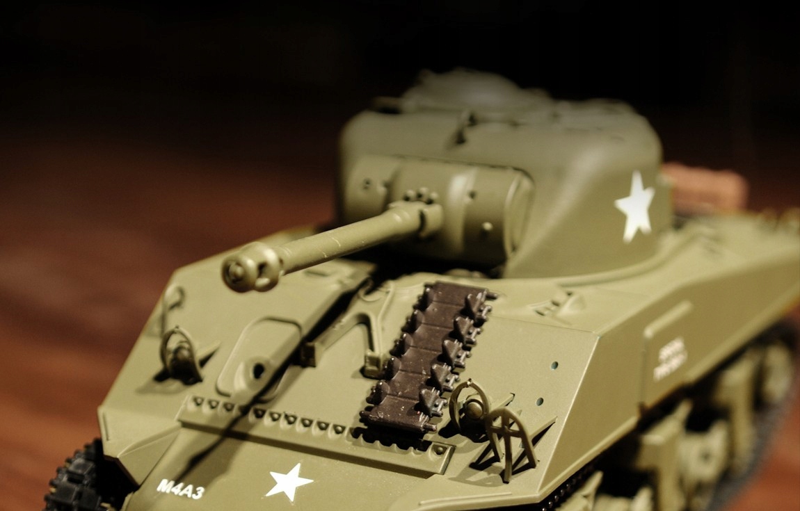 Дистанційно контрольована модель американського танка Шермана "Легка восьми" за шкалою 1:30, добре відомого виробника Хенга Лонга. Характеристики моделі