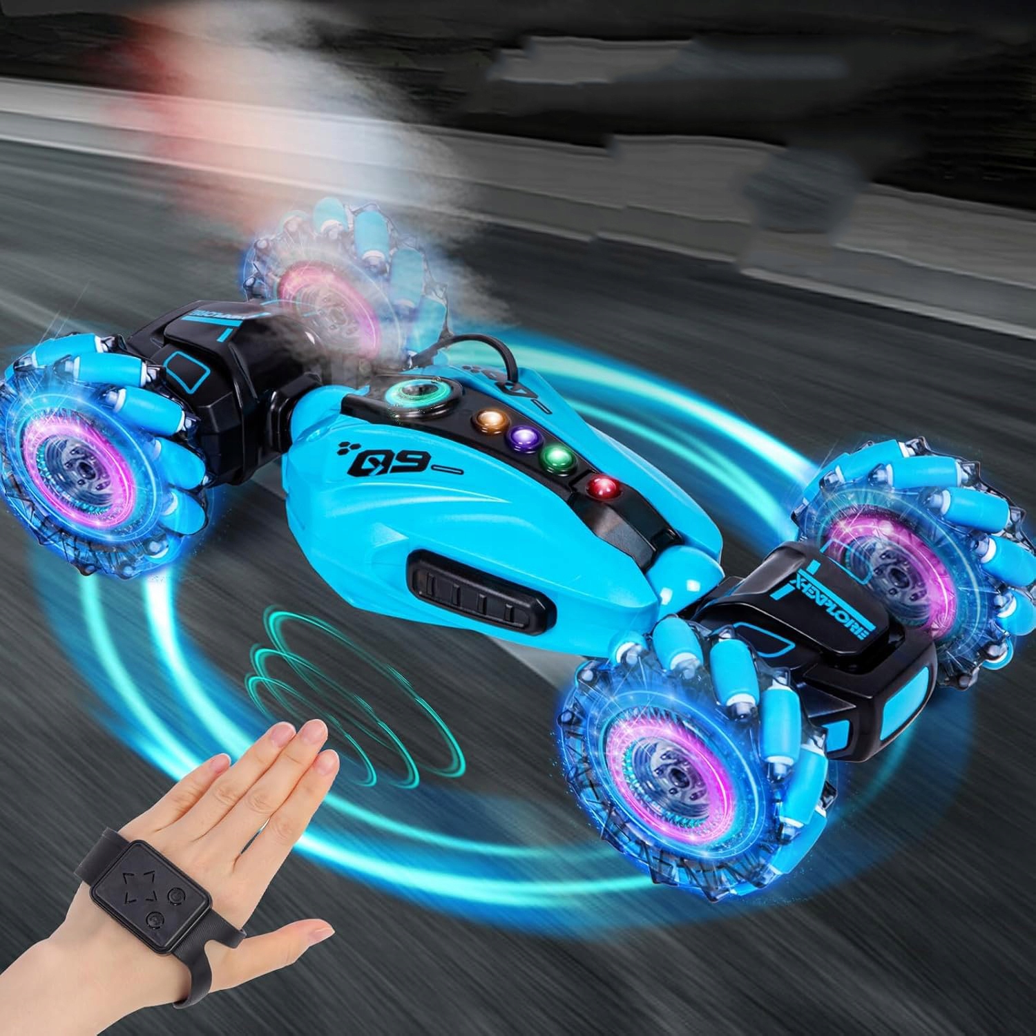 🚗🚗🚗 барвисті та сліпучі світлові ефекти: Наш RC Car поєднує багато функцій в одному зі світлодіодними вогнями та заднім розпилювачем. Світло та звукові ефекти поєднуються, багатоколених вогнів постійно змінюються та мерехтять, забезпечуючи сліпучий та крутий візуальний ефект вночі.