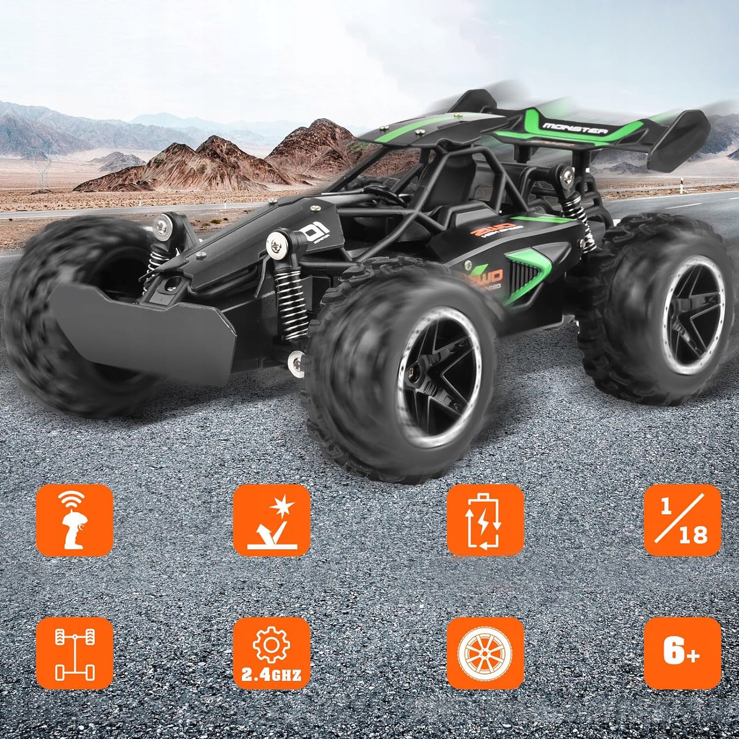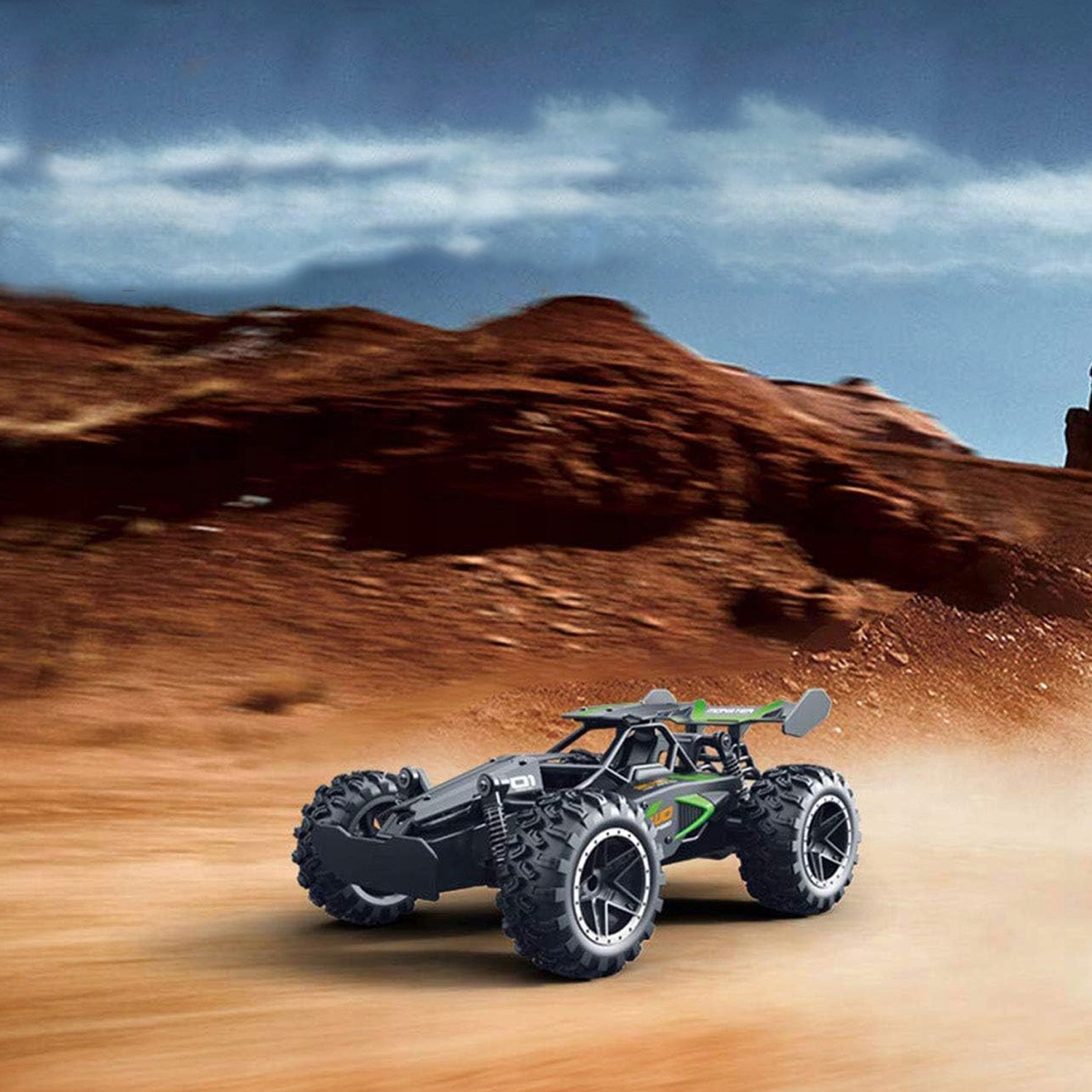 Унікальний іграшковий автомобіль має такий самий суперкрутий вигляд, як і позашляховик, чотири міцні шини зі складеним протектором, гарне зчеплення, автомобіль із заднім приводом, передня підвіска та задня пружинна амортизація. Це полегшує водіння по нерівних дорогах, а низький центр ваги та конструкція заднього антикрила дозволяють швидко їздити та дріфтувати.