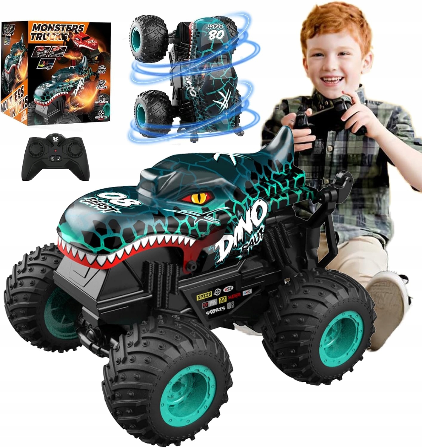 🚕 дистанційно контрольована вантажівка з монстрами з діями динозаврів, музикою та дуже веселою! 4