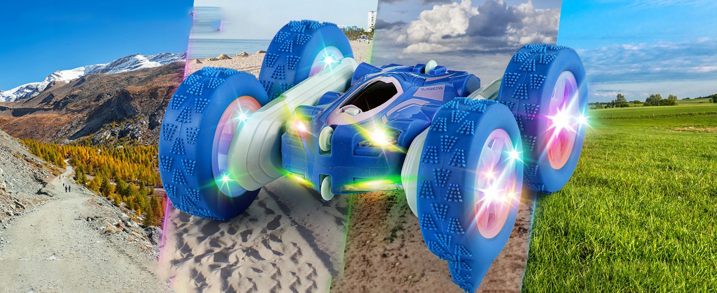 🚘 【дистанційно керований трюк -автомобіль】: Корпус дистанційного -керованого автомобіля стійкий до шоку та падіння. Шини виготовлені з високоякісної м'якої гуми, яка має амортизуючі, клейкі та не -сяві властивості. У трюкових машинах ви можете грати вночі, на пляжі, на траві чи в горах, придатних для ігор у приміщенні та на відкритому повітрі.