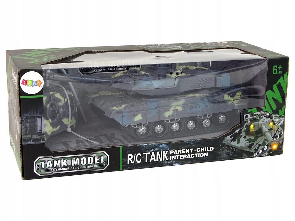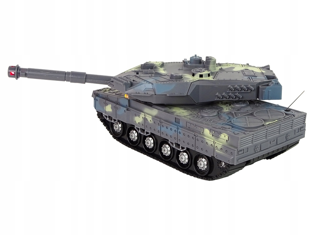 4 Пістолет рухається, а під час пострілу звук та легкі ефекти активовані - чути удар пострілу, а бочка світить червоним світлодіодом.дистанційне управління з частотою 27 МГц забезпечує інтуїтивне поводження з резервуаром. Транспортний засіб може йти вперед, назад, повертати вбік і навіть обертати 360 градусів. Завдяки великому діапазону пілота діти можуть вести свої військові битви у великих просторах, граючи наодинці або в компанії однолітків.