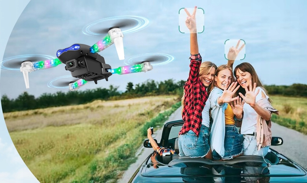 - Функції польоту: прозорі руки з барвистими вогнями, перемикання двох камер, функція постійної висоти, складання, шість