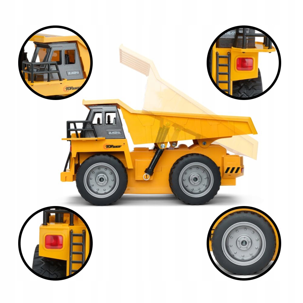 🟡 🟡penne смішні функції та реалістичні деталі --- Після завантаження піску, каменів або ґрунту у великий контейнер ви можете швидко дістатися до будівельного майданчика, переміщуючи суцільну мотузку за шкалою 1:18, використовуючи контроль. Коли ви будете готові до вивантаження, натисніть кнопку управління, щоб підняти і залишити трохи. Цей великий іграшок оснащений миготливими вогнями для розвідки. Без обмежень. Цей дитячий смітник з індикаторами має інтерактивну зону завантаження, яка дозволяє вільно підняти та опустити. Вантажівка знаходиться за шкалою 1:18. Гумові шини з сильною адгезією. Він підходить для будь-якої області, кам'яних весла, піску, цементних доріг, гладких підлог, стійкості до тертя. Ваша дитина може розвивати свої навички координації, уяву та творчість.