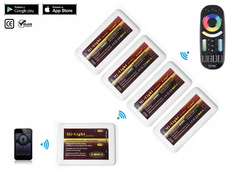 Для створення зони слід придбати контролер зони Fun037 I/або FUT038. Щоб контролювати освітлення за смартфоном, придбайте контролер WIFI-4S.
