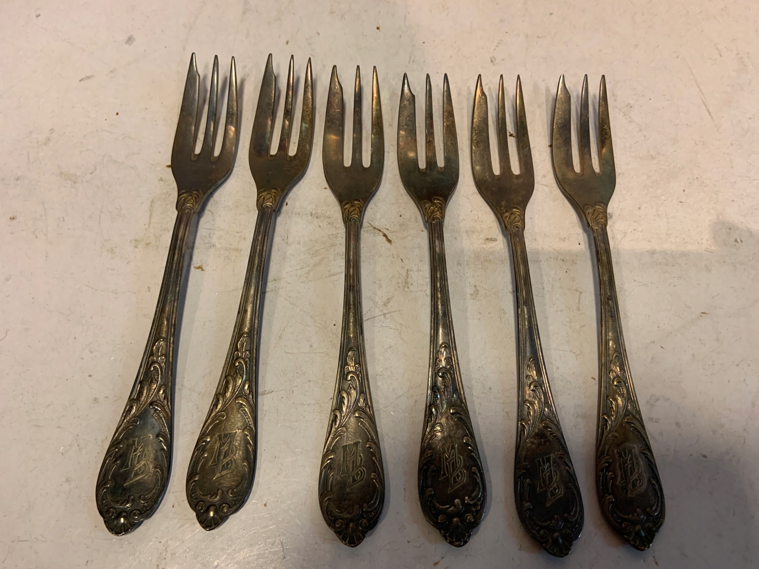 ВИДЕЛКИ ДЛЯ ТОРТУ 6 ШТ. ДОВОЄННИЙ WELLNER WZ ALEKSANDER ІНІЦІАЛИ MB