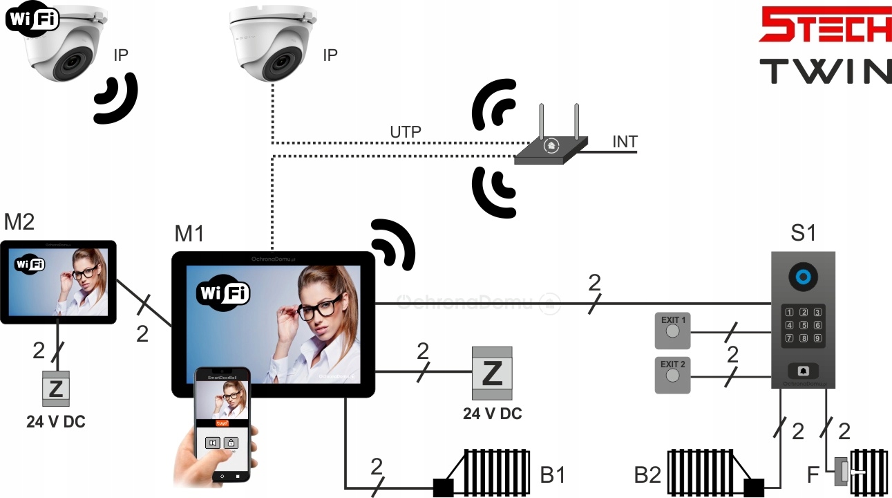 Відео-телефон 5tech Digital, 2-провідний близнюк із коробкою для списків, оснащених датчиком виявлення кореспонденції, FullHD Camera