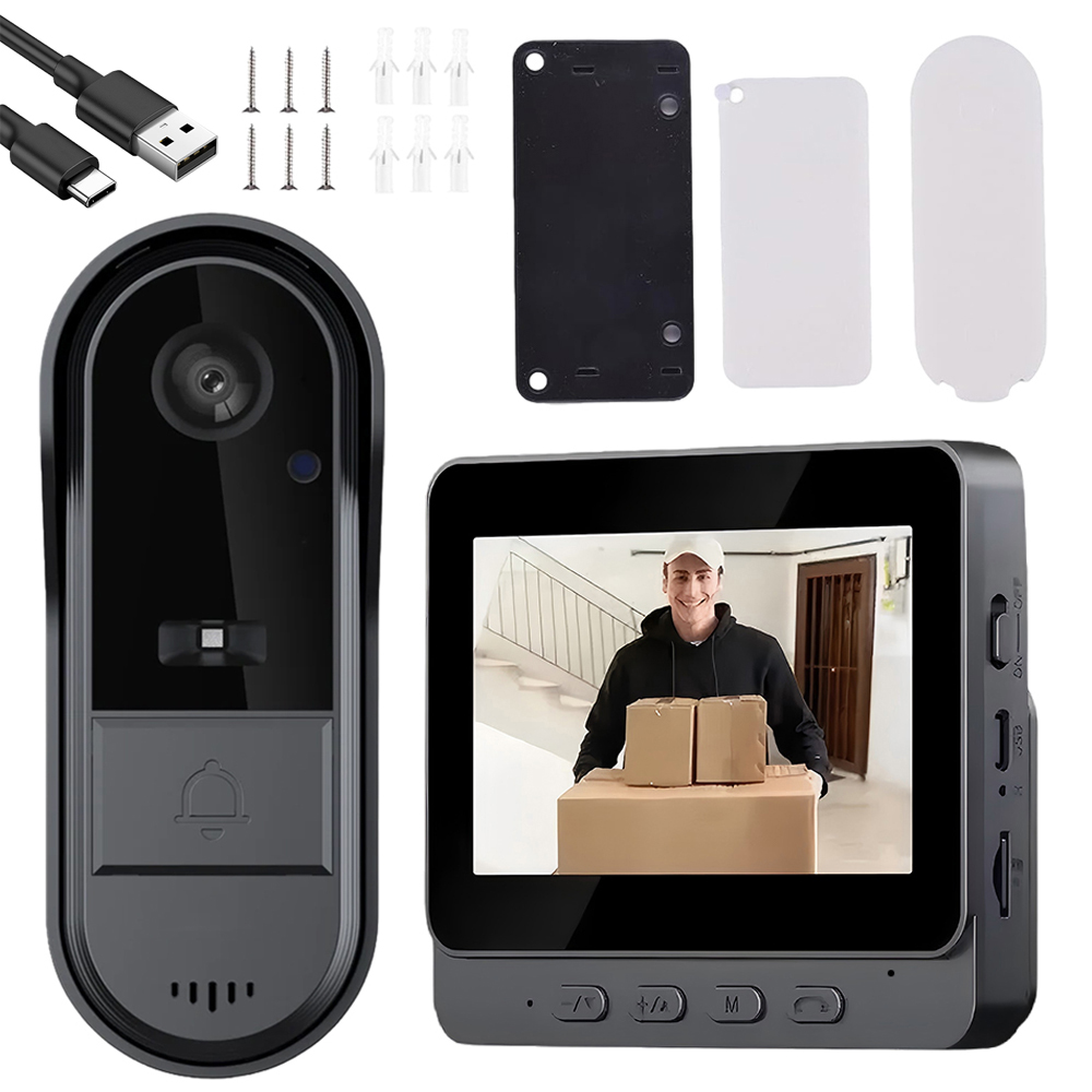 - Цей дзвоник бездротового дверця з камерою не потребує встановлення або завантаження програми, не вимагає підключення до мережі, має бездротове з'єднання Bluetooth 2.4G, поєднання з одним клацанням, і ви можете побачити зовнішню камеру під час внутрішнього моніторингу. Його дім так, що коли хтось дзвонить у двері, він може бачити, почути та зв’язатися з людиною на вулиці. Зберігання фільмів та фотографій.