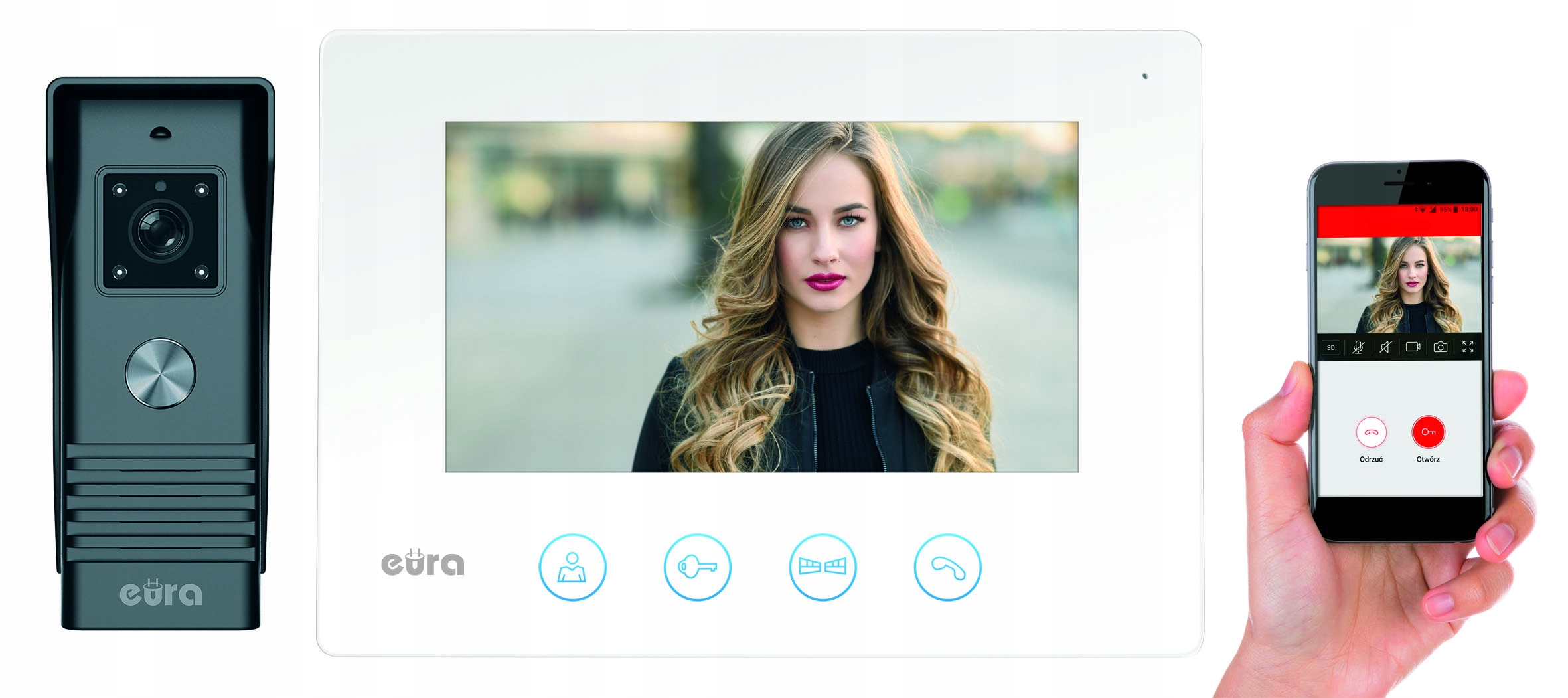 Словацький Монітор EURA VDA-40A3 має вбудований модуль WiFi , що дозволяє працювати пристрою за допомогою програми Eura Connect, доступного на платформах Android та iOS. Після натискання кнопки виклику на зовнішній касеті, паралельний монітор та смартфон, оснащений мобільним додатком Eura Connect , завдяки якому можна приймати дзвінки, керувати електромагнітними болтом та машиною для воріт, фотографіями вручну та записувати фільми під час тривалості.