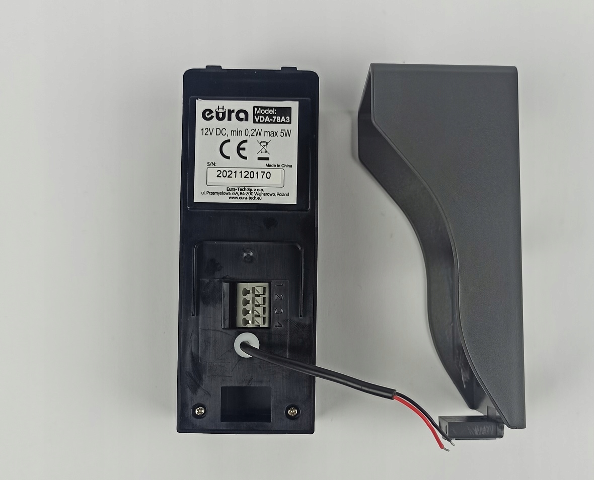 обладнаний захисним навісом, зовнішня касета VDA-78A3 із коефіцієнтом захисту IP44 дозволяє належним чином працювати домофон відео навіть у складних погодних умовах. Камера високої якості забезпечує чудові параметри зображення, також вночі - завдяки 4 світлодіодам, що дозволяють попередньо переглянути зовнішнє середовище касети з недостатнім освітленням.