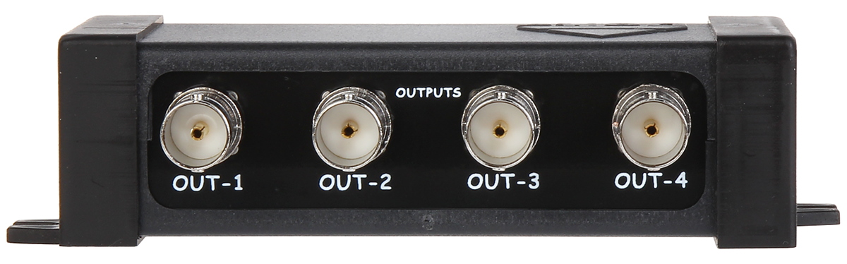 Відеорозгалужувач RV-1/4P дозволяє розділяти відеосигнали. Прилад призначений для тривалої роботи в закритих приміщеннях. Пристрій адаптований до кольорових, чорно-білих, PAL камер. Відповідна відстань між гніздами дозволяє легко затягнути будь-яку вилку BNC пальцями.