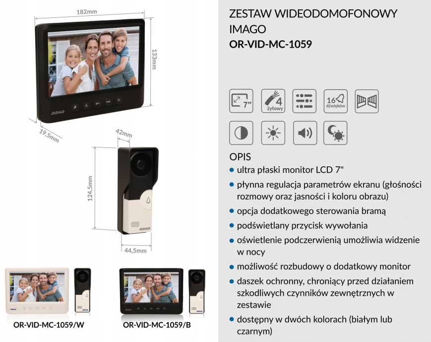 ORNO OR-VID Відеодомофон MC-1059/B – це надійний інструмент моніторингу та контролю доступу до об’єкта, що забезпечує комфорт, безпеку та естетичний вигляд в одному.