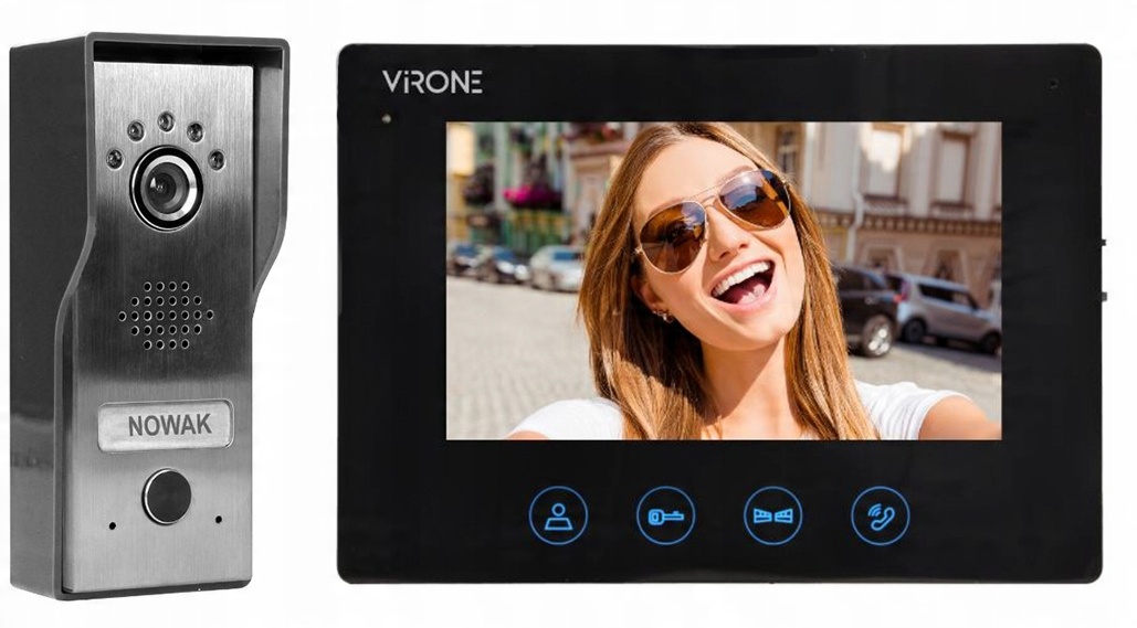 Комплект відеодомофона, барвистий ультраплоский 7˝ РК-монітор без трубки, сенсорна панель монітора з підсвічуванням кнопок, плавне регулювання параметри монітора (гучність дзвінка і розмови, а також яскравість і колір зображення), 16 звуків дзвінка на вибір, CMOS камера, поверхневий монтаж, захисний кожух в комплекті, місце для імені, яскраве світлодіодне освітлення з можливістю нічного бачення, функція внутрішнього зв'язку після використання додаткового монітора, додаткового керування воротами, живлення постійного струму від джерела живлення до розетки 12 В постійного струму, електричного удару з напругою постійного струму та споживанням струму, що не перевищує 500 мА, не вимагає додаткового живлення.