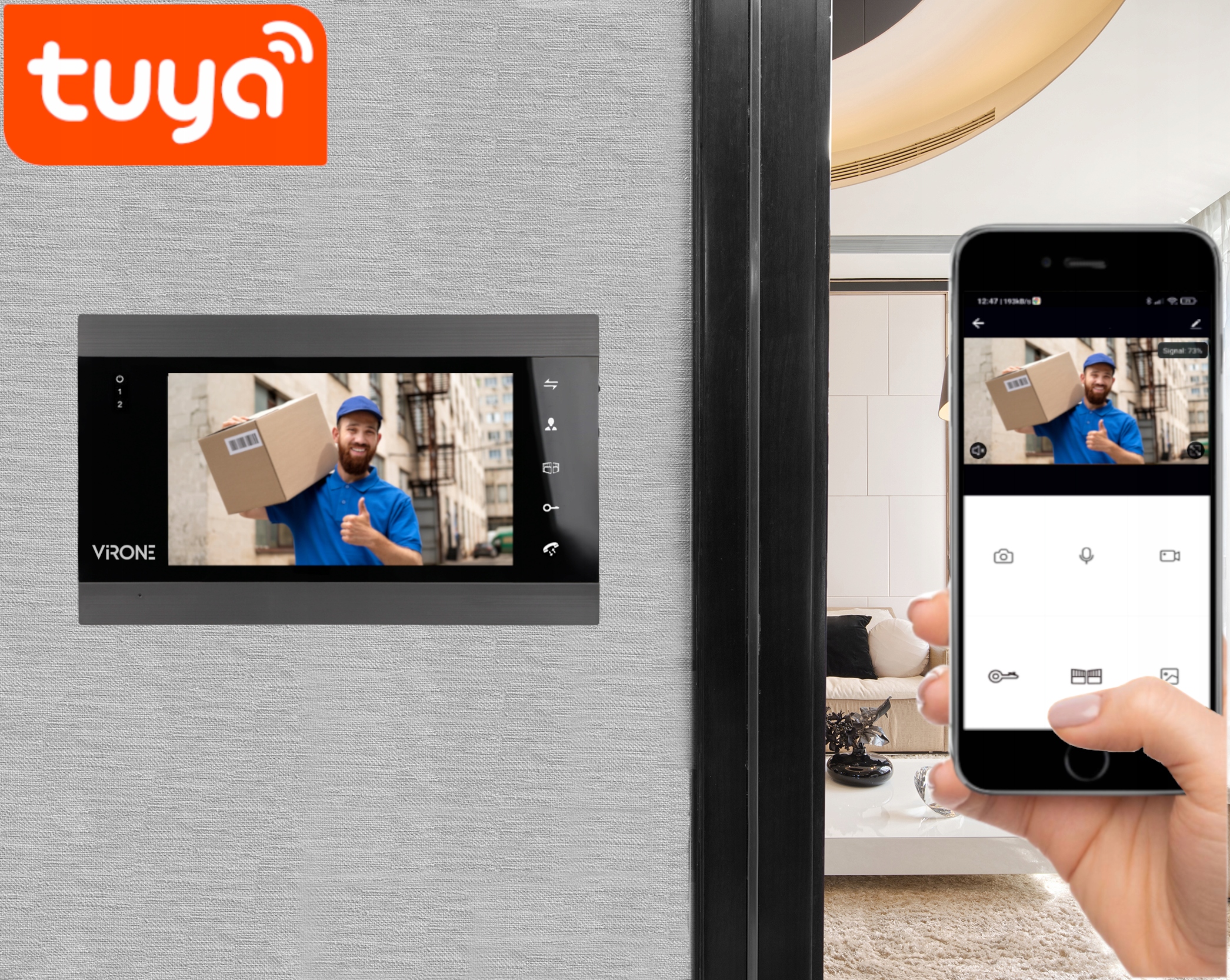 - На додаток до традиційного керування з монітора, відеодомофоном можна керувати через безкоштовну програму Tuya Smart, який доступний для iOS і Android. Програма наведена ПОЛЬСЬКОЮ мовою!