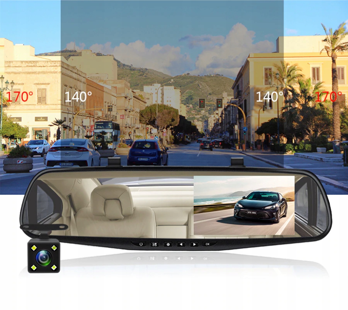 ✅ Задня камера - дозволяє зареєструвати те, що відбувається за машиною. Під час запису можна переглянути дисплей з лівого боку дзеркала. The camera has built -in 4 LEDs LED