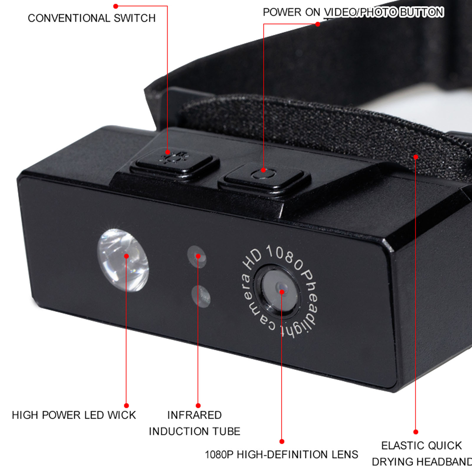 Світлодіодний налобний ліхтар Підтримка камери Інтелектуальний сенсорний перемикач жестів Налобний ліхтар Можна носити на тілі Відеокамера з відбивачем і еластичною стрічкою