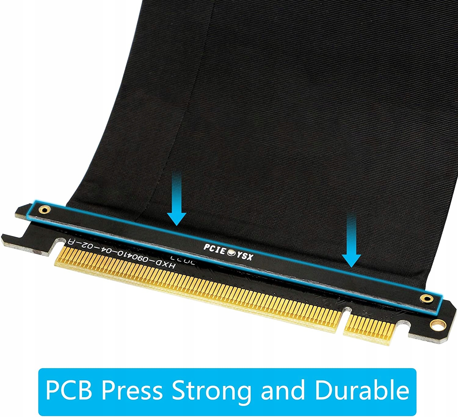 - Стійкий матеріал для високих частот і низького затухання. Підтримує високошвидкісну карту PCI-E 16X. Стабільний PCIe Gen3 8 Гбіт/с або швидше з високоякісним кабелем