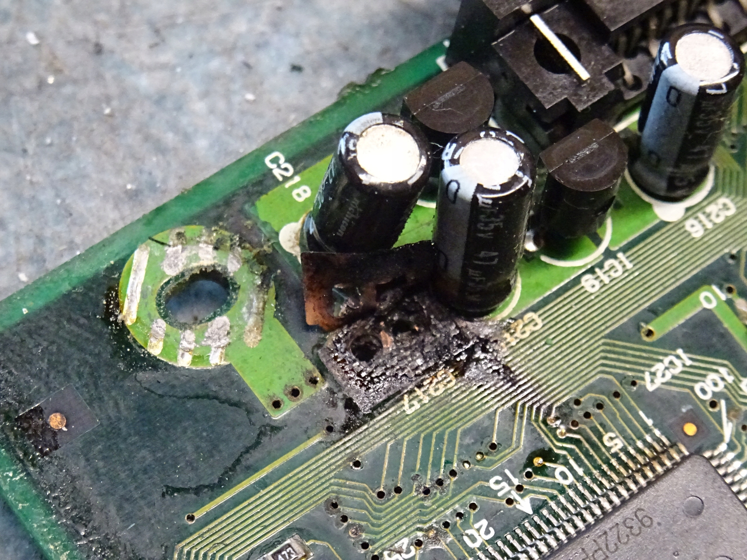 Була спроба відремонтувати конденсатор, який має коротке замикання на землю, але шлях потрібно відремонтувати.