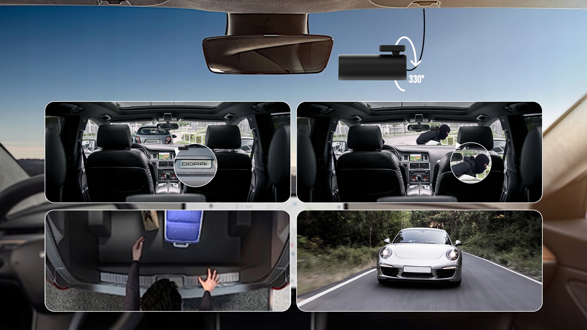 Об’єктив, що обертається на 330°, дає змогу легко знімати мальовничі краєвиди за вікном і робити селфі всередині автомобіля.