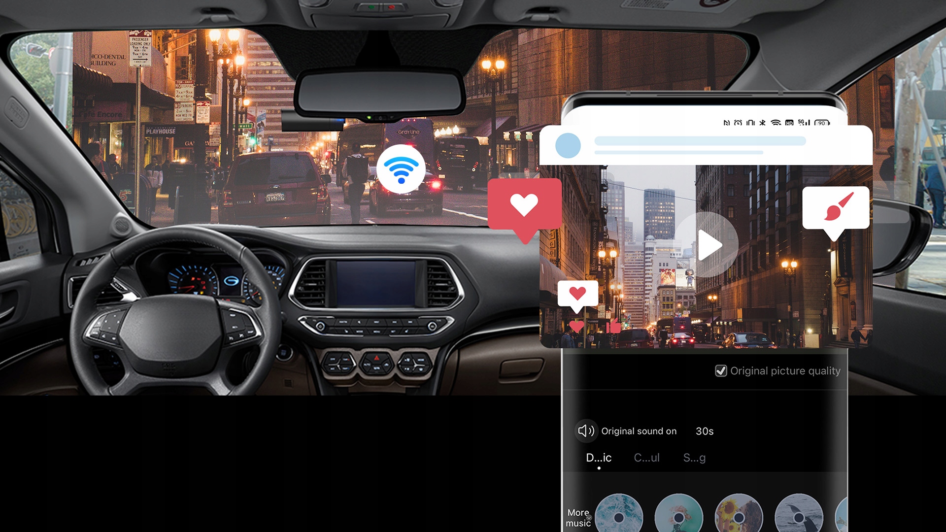 Підключіть MINI Pro до програми DDPAI, щоб насолоджуватися попереднім переглядом у реальному часі, відтворенням завантажених файлів, функціями постпродакшну та онлайн-обміном фото/відео з власниками транспортних засобів.