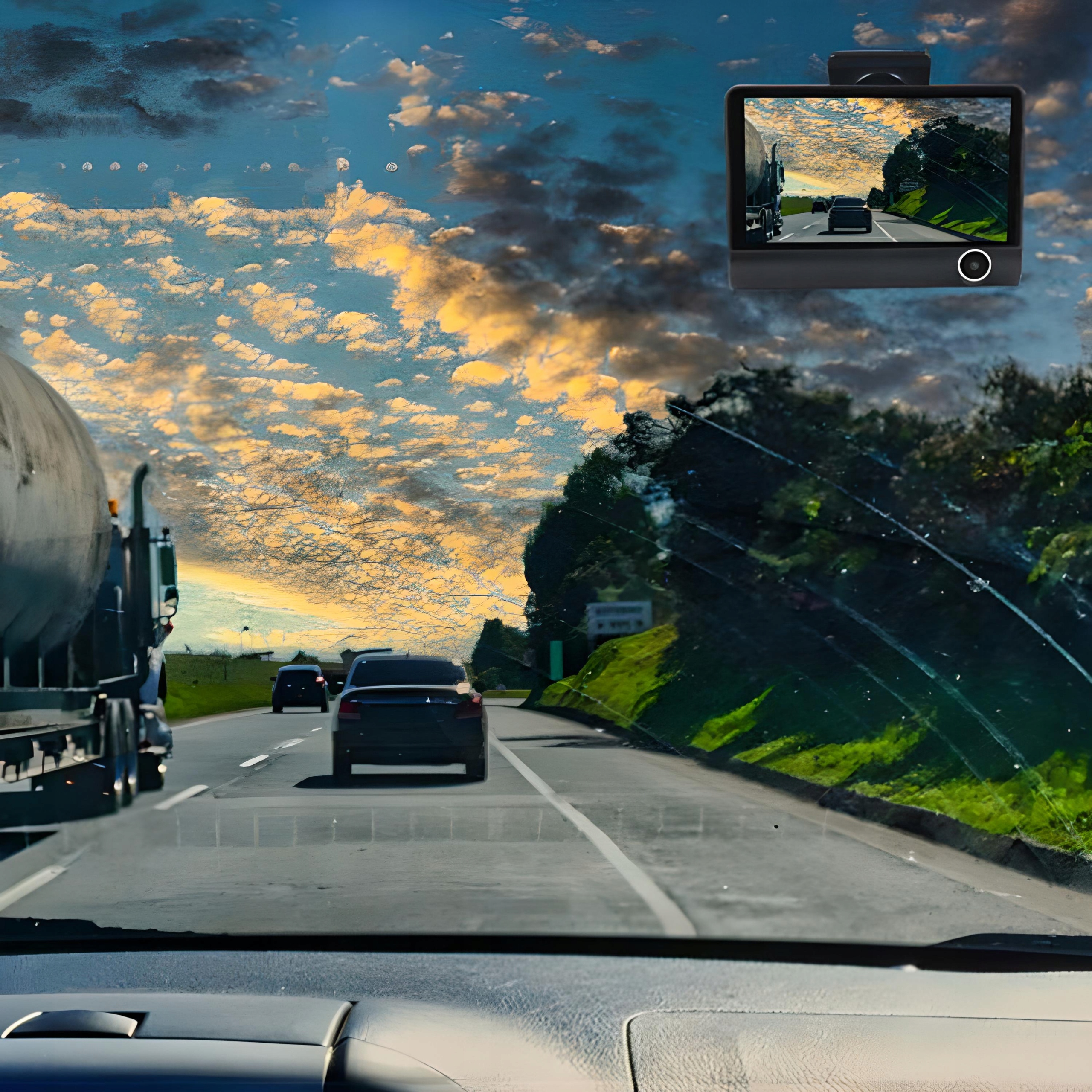 Реєстратор водіння автомобіля, пристрій, необхідний кожному водієві. Набір із 3 камер (передня, задня, кабіна) плюс великий РК-дисплей. Автомобільний реєстратор для запису подій і зіткнень.