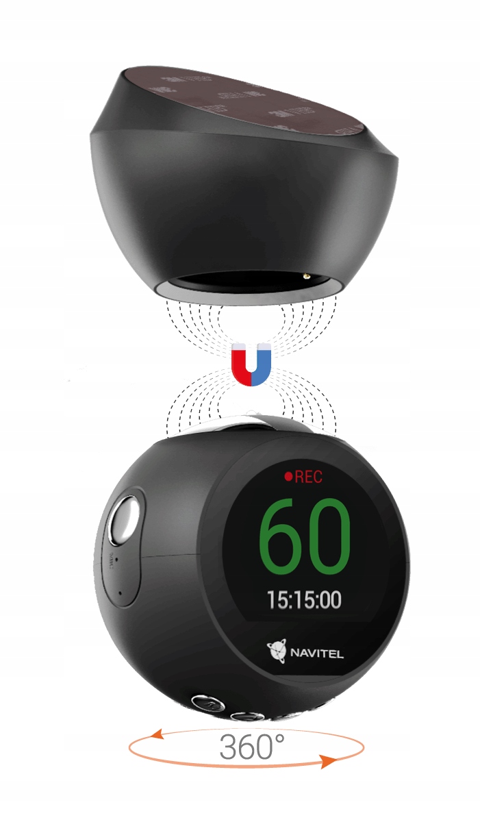 NAVITEL R10 має самоклеючий тримач для стрічки 3М, який можна стабільно закріпити на лобовому склі автомобіля та підключити камеру за допомогою магнітного тримача. Це дозволяє обертати його на 360°. За допомогою цього пристрою можна записувати важливі події з передньої чи салонної частини автомобіля, знімати пасажирське сидіння і навіть двері з боку водія. Використання цього відеореєстратора може допомогти захистити вас від нечесних дій або корупції.