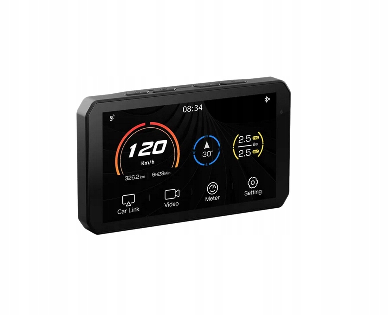 AIO-5 Lite: надзвичайно яскравий 5-дюймовий екран, Apple CarPlay, Android Auto, відеореєстратор 1080P, BSD, мотоциклетна навігація та статистика водіння.