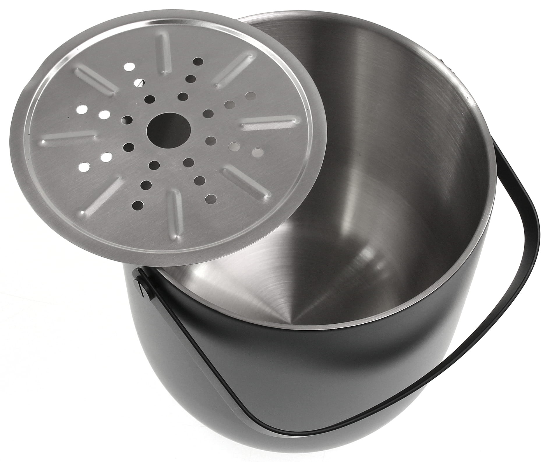 Відро з нержавіючої сталі з порошковим покриттям чорного кольору.