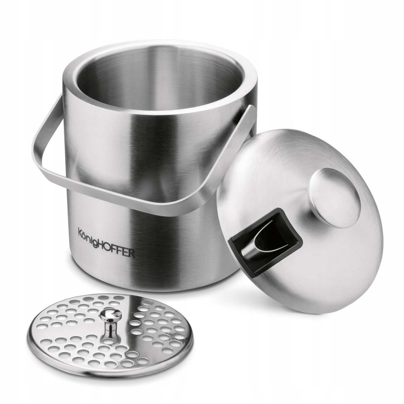 Модельне відро, розроблене за допомогою сплаву з нержавіючої сталі та міцного чорного пластику. У цьому випадку виробник подбав про доповнення привабливого дизайну, додавши до нього дуже хороший рівень функціональності. Обслуговування холодного рівня, який дозволяє зберігати щиколотки в стані, що дає можливість легких порцій та охолоджуючих напоїв. Відро, що продається в наборі з практичними крижаними плоскогубцями у версії з ефектом атласної металевої поверхні.