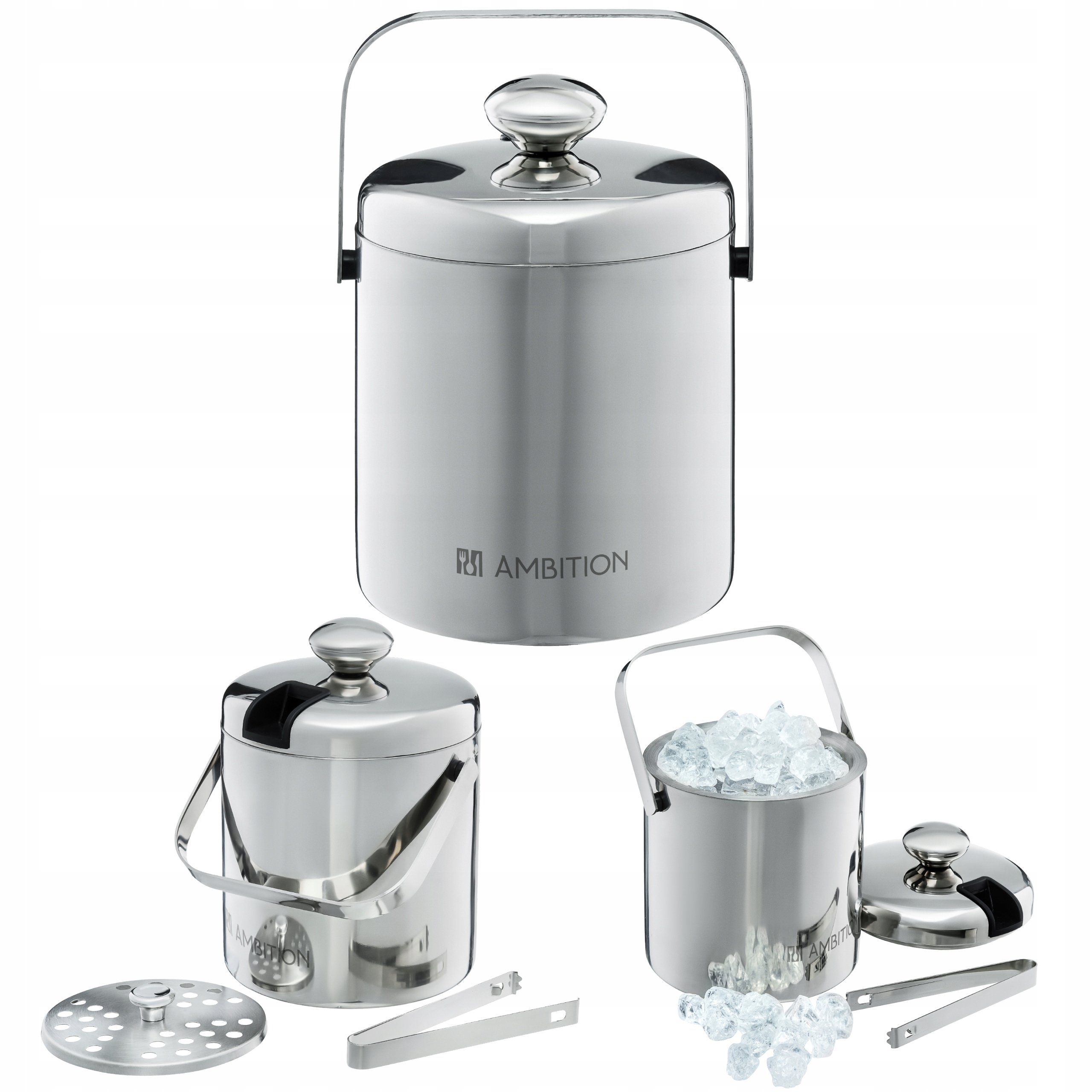 Крижане відро з кришкою та плоскогубці з прохолоднішими амбіціями з нержавіючої сталі