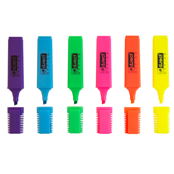 Високоякісні флуоресцентні хайлайтери від d.rect. Ідеально підходить для всіх типів паперу, а завдяки добре сформованому кінчику ви можете отримати лінії різної товщини – широкі, тонкі чи середні, залежно від індивідуальних потреб.