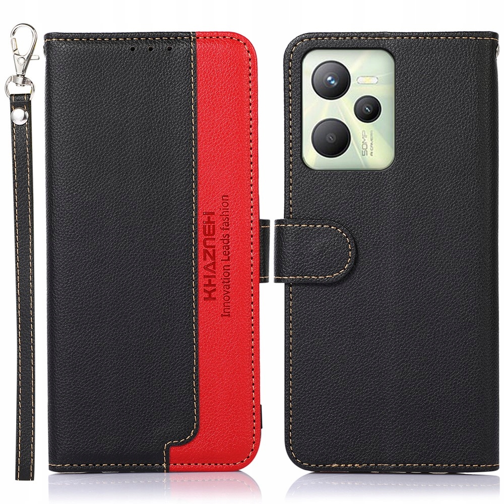 Чохол-гаманець для Realme C35, KHAZNEH RFID, двоколірний, чорний