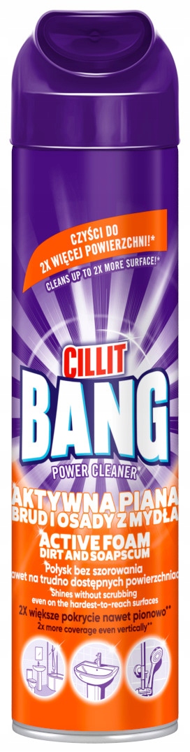 Використовуйте Cillit Bang Active Foam Soap для швидкого та ретельного видалення мильного нальоту та бруду у ванній кімнаті. Active Foam надовго забезпечить неповторний блиск Вашій ванній кімнаті. Зручна у використанні піна ідеально покриває великі поверхні - до 2 разів швидше в порівнянні з традиційними спреями. Приємно пахне.