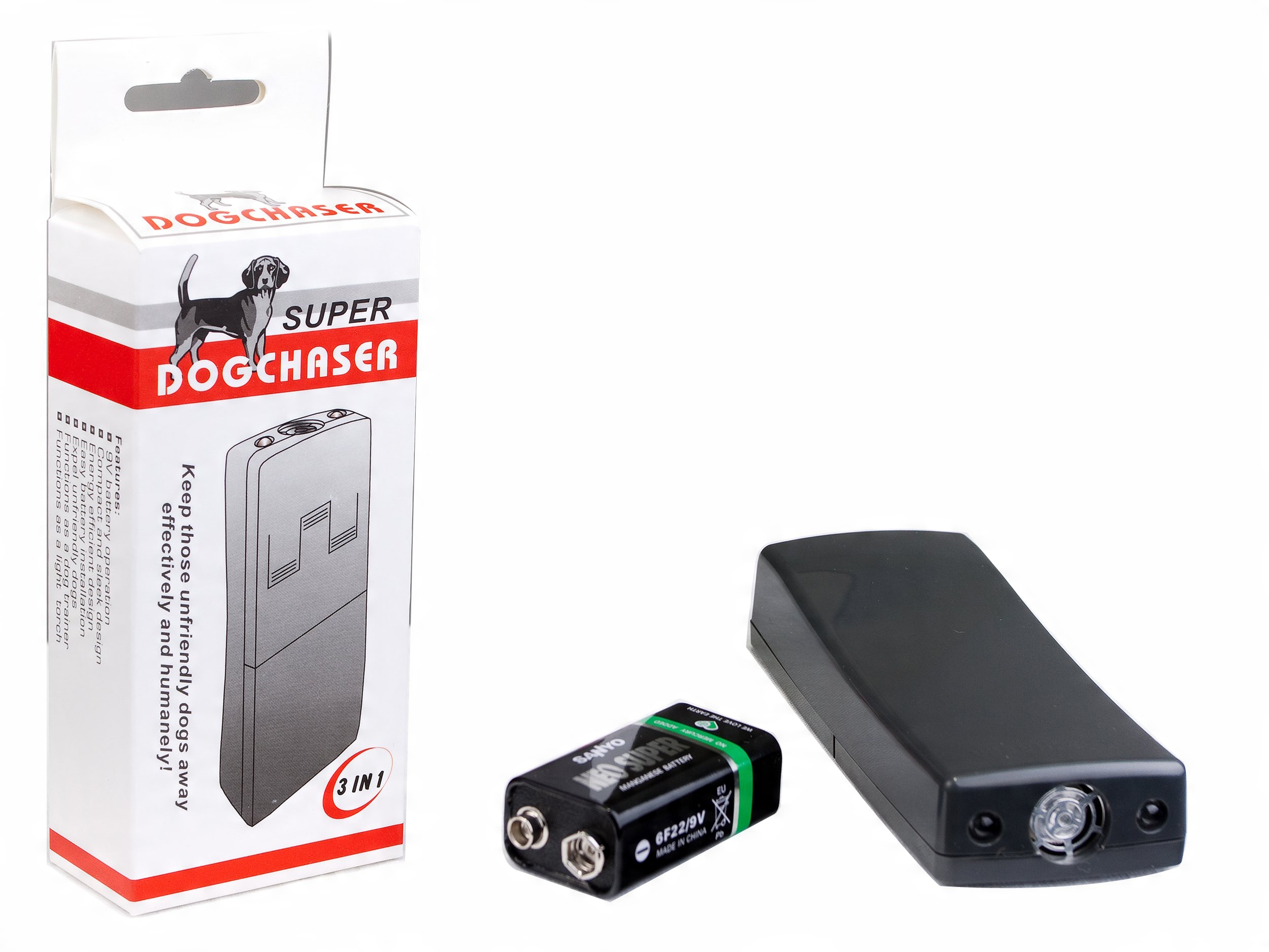 SUPERDOGCHASER – пристрій, що випромінює хвилі з частотоюz в діапазоні 20000-25000 Гц, нечутні людині. Ці хвилі відштовхують собак, які знаходяться в радіусі його дії. Його також можна використовувати під час навчання. SUPERDOGCHASER - це сучасний пристрій, який ідеально підходить для прогулянок, а також для велосипедистів, листонош, інкасаторів, поліцейських, бігунів, мисливців, людей, які бояться собак, людей похилого віку та дітей, які йдуть до школи одні. Він невеликий за розміром, легкий за вагою та додатково оснащений світлодіодами, які виконують функцію ліхтарика.