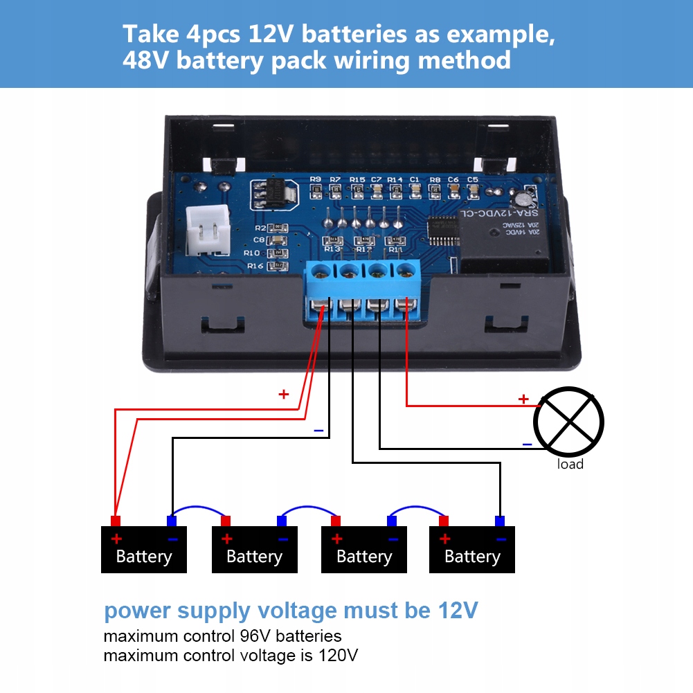 1. Це контролер перемикача мінімальної напруги, який використовується для відключення живлення навантаження, коли напруга падає нижче заданого значення 2. Коли напруга батареї підвищується до встановленого значення, модуль автоматично вмикає перезавантаження 3. Розроблено зі світлодіодним індикатором щоб вказати, чи напруга батареї занадто низька. 4. Значення напруги як для вимкнення, так і для ввімкнення можна регулювати простим натисканням 5 кнопок. Цей контролер допоможе захистити батарею від надмірного розряду та подовжити термін служби батареї життя