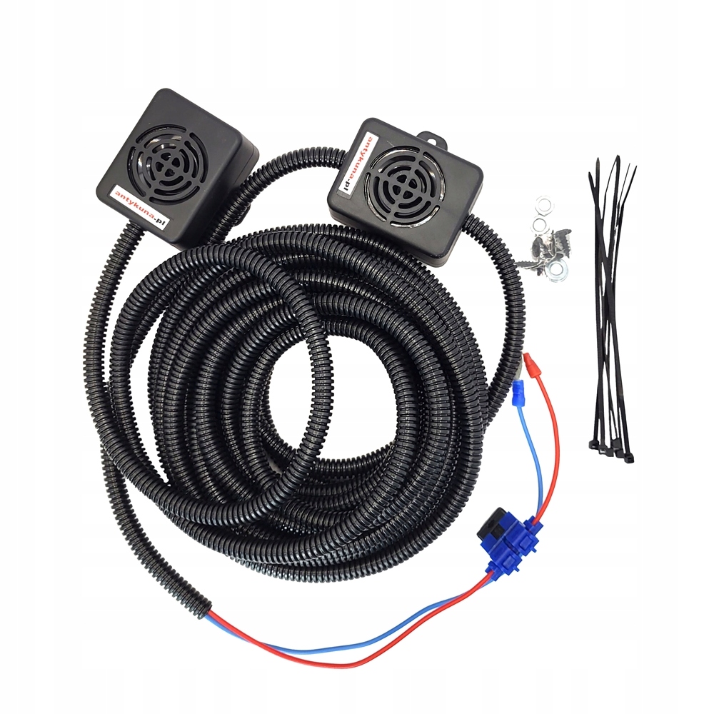 Для вантажівок з великим простором< /b > навколо двигуна під капотом. Для автомобілів з установкою 24 В. Захищаєдві зони входугризунів у двигун. Він має 2 відлякувачі з 1 динаміком кожен, які повинні бути встановлені зліва та справа від двигуна до шасі коробки передач.