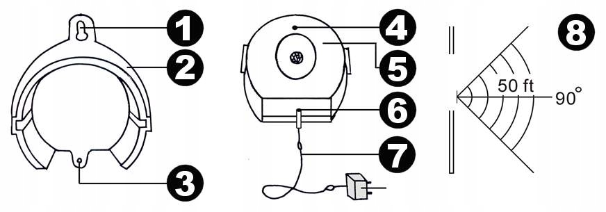 У комплект входить відлякувач, адаптер (блок живлення), кабель-подовжувач довжиною 5,5 метрів і спеціально розроблена монтажна кришка.